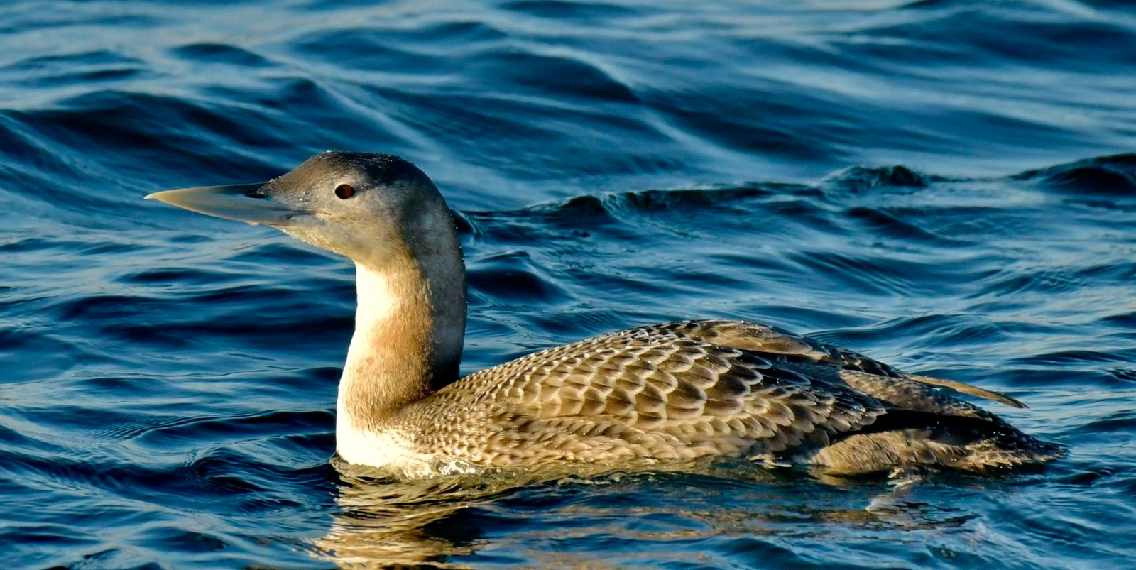 Adultul în penajul postnupțial (toamna și iarna) are calota și ceafa brun-cenușiu închise, în jurul ochiului alb-cremoasă, părțile superioare sunt cenușiu-brunii, cu un desen vag de pătrate pe penele scapulare și cu pete albe pe tectricele alare; partea inferioară a gâtului brunie, formând un guler vag definit și cu întreruperi; bărbia, partea inferioară și anterioară a gâtului albicioase, partea centrală a pieptului și abdomenul albe. Subadultul iarnă este asemănător cu adultul în penajul postnupțial, dar nu are pete albe pe tectricele aripilor. Se hrănește mai ales cu pești, inclusiv cu zglăvoace, cod mic de Pacific și cod de Atlantic; dar consumă și crustacee, moluște și viermi marini. Se cufundă adesea sub apă unde prinde peștii după o urmărire. Este o specie solitară. Cuibul format dintr-o grămadă de materii vegetale este construit lângă marginea apei, de obicei pe malul unui lac cu apă limpede, cu o vizibilitate bună a zonelor înconjurătoare. Reproducerea începe după topirea gheții, în principal la începutul lui iunie. Ponta constă din două ouă. Puii au puful brun închis, mai palid pe abdomen. Strigătele de contact și alarmă sunt puternice, urlătoare sau plângătoare, și se aud la o distanță de până la opt kilometri.