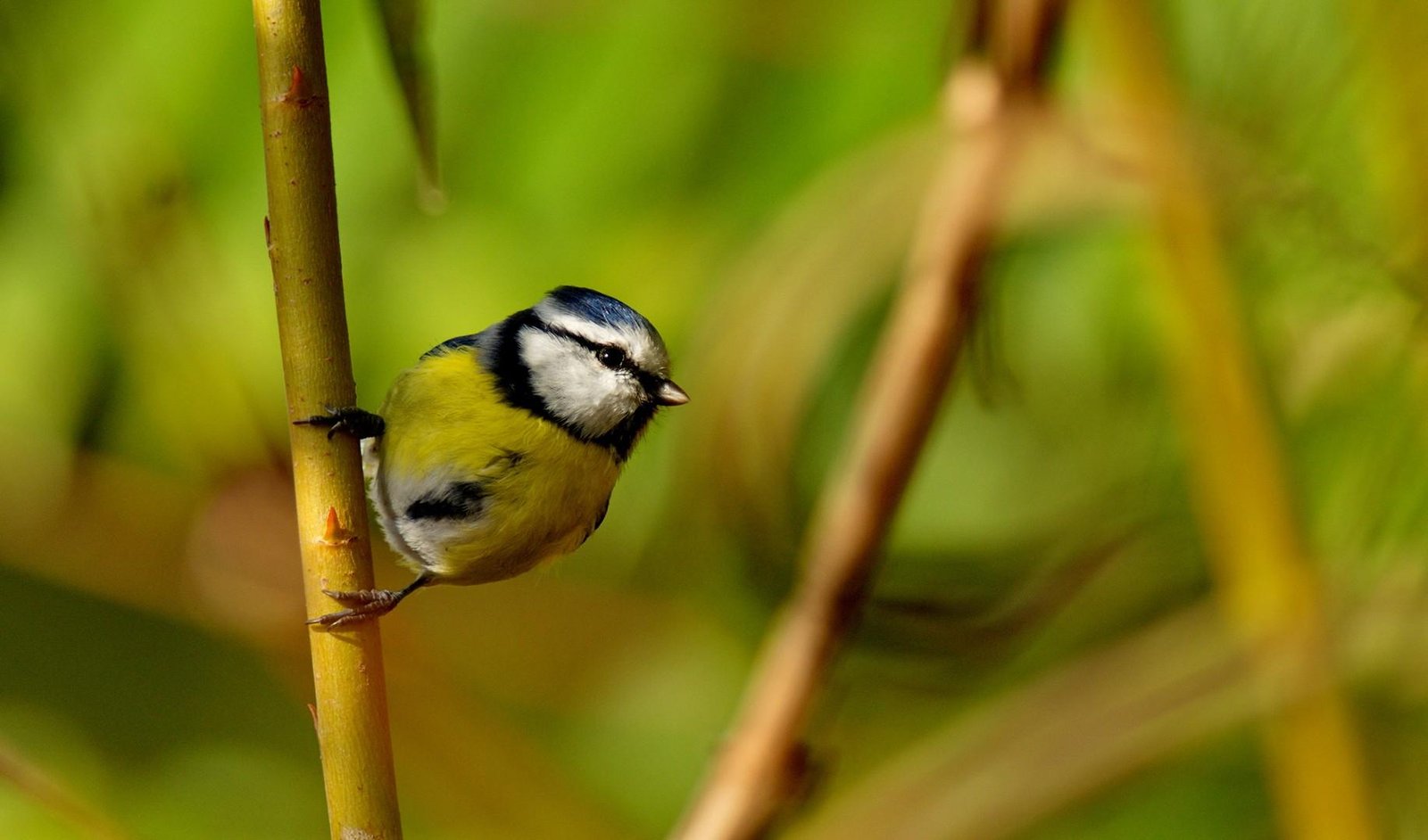 Penajul pe partea dorsală este de culoare verde-albăstruie, coadă, aripile și capul au nuanțe albastre, pe partea ventrala culoarea este galben-deschis. Pe mijlocul pieptului are o bandă longitudinala albastră-neagră. Penele cele mai mari ale aripilor prezintă un desen albastru-deschis și alb. Ciocul este negru și față albă. Are lungimea corpului de 10-12 cm, deschiderea aripilor de 18 cm și greutatea de 11 g.