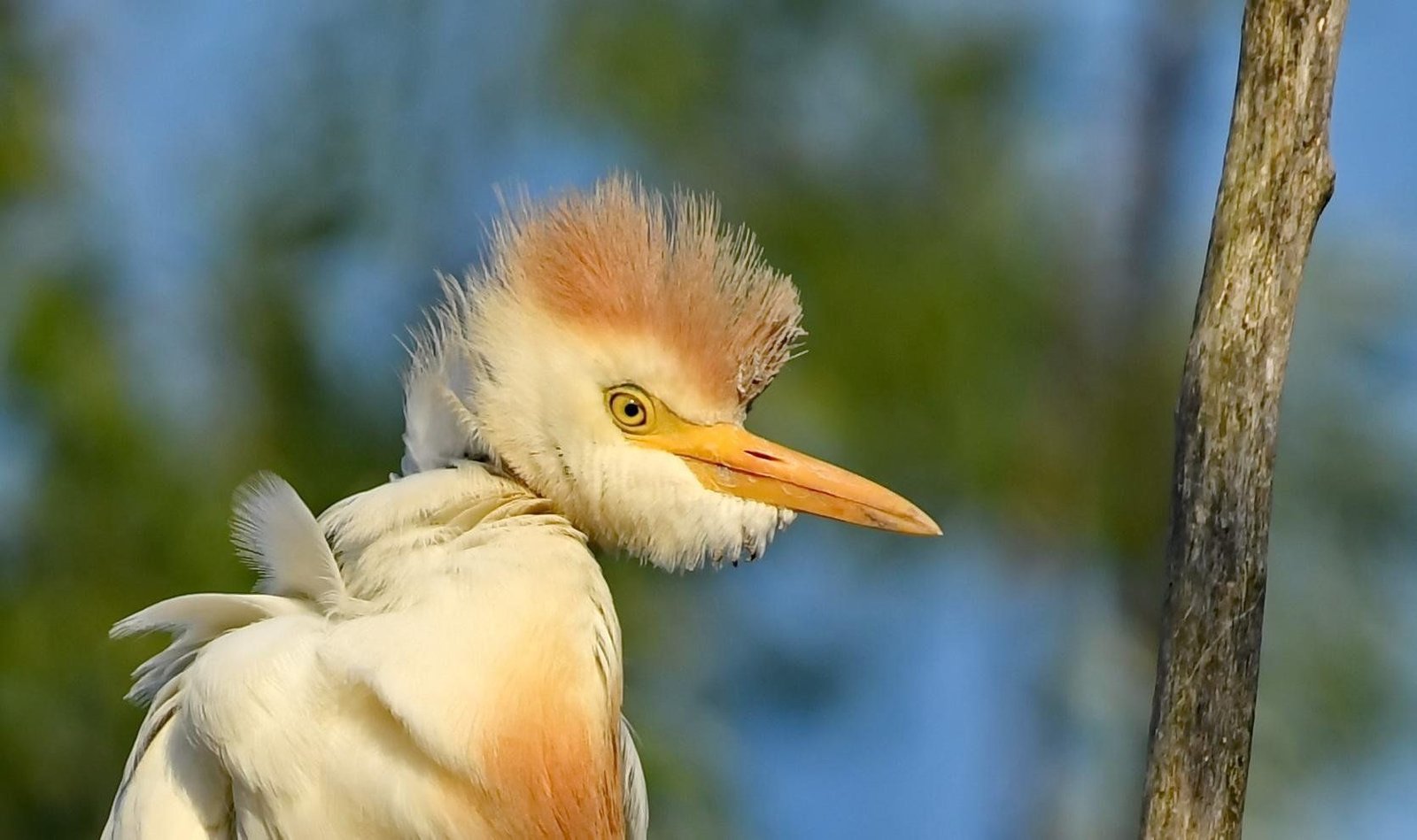 În impresionantele parade nupţiale din sezonul împerecherii, partenerii se întind, clămpănesc din cioc, iar masculii îşi expun ţanţoşi penele galbene. Când unul dintre părinţi soseşte la cuib, partenerul îl întâmpină cu un aer ceremonios, înfoindu-şi penele de pe spate. Dansurile lor nu sunt greu de observat, deoarece păsările acceptă prezenţa omului.