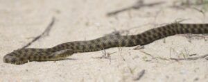 body. They are mostly able to see easily in a woodland or desert, and sometimes in mountain streams. They usually eat fish, and sometimes they may also eat amphibians. The dice snake is a bit shy.They may grow up to 90 cm long, and has a brown or grey colouring. Although Dice snakes can be seen in Asia, they do not live a lot on Crete. Dice snakes do not have any venom. They can let out a very bad smell, however, for defense. Another thing they use for defending themselves is playing dead. Dice snakes go into dry holes next to the water, and sleep from October to April. This is called hibernating.