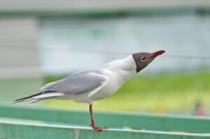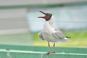 The Black-headed Gull is a bold and opportunistic feeder and will eat insects, fish, seeds, worms, scraps and carrion in towns, or take invertebrates in ploughed fields with equal relish. This is a noisy species, especially in colonies, with a familiar “kree-ar” call. Its scientific name means “laughing gull”.