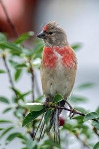 Females and young birds lack the red and have white underparts with the breast streaked buff. The Linnet’s pleasant song contains fast trills and twitters.