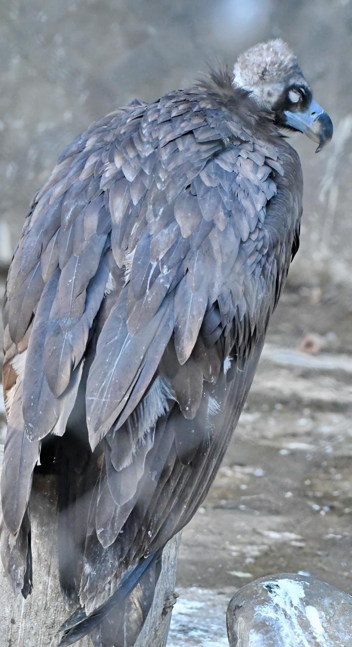 The genus name Aegypius is a Greek word (αἰγυπιός) for ‘vulture’, or a bird not unlike one; Aelian describes the aegypius as “halfway between a vulture (gyps) and an eagle”. Some authorities think this a good description of a lammergeier; others do not. Aegypius is the eponym of the species, whatever it was in ancient Greek. The English name ‘black vulture’ refers to the plumage colour, while ‘monk vulture’, a direct translation of its German name Mönchsgeier, refers to the bald head and ruff of neck feathers like a monk’s cowl. ‘Cinereous vulture’ (Latin cineraceus, ash-coloured; pale, whitish grey), was a deliberate attempt to rename it with a new name distinct from the American black vulture.