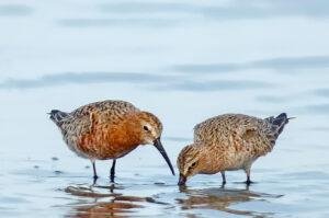 This wader is highly gregarious, and will form flocks with other calidrid waders, particularly Dunlin. Despite its easterly breeding range, this species is regular on passage in western Europe, presumably because of the southwesterly migration route.