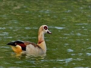 Both sexes are aggressively territorial towards their own species when breeding and frequently pursue intruders into the air, attacking them in aerial “dogfights”. Egyptian geese have been observed attacking aerial objects such as drones that enter their habitat as well. Neighbouring pairs may even kill another’s offspring for their own offsprings’ survival as well as for more resources.