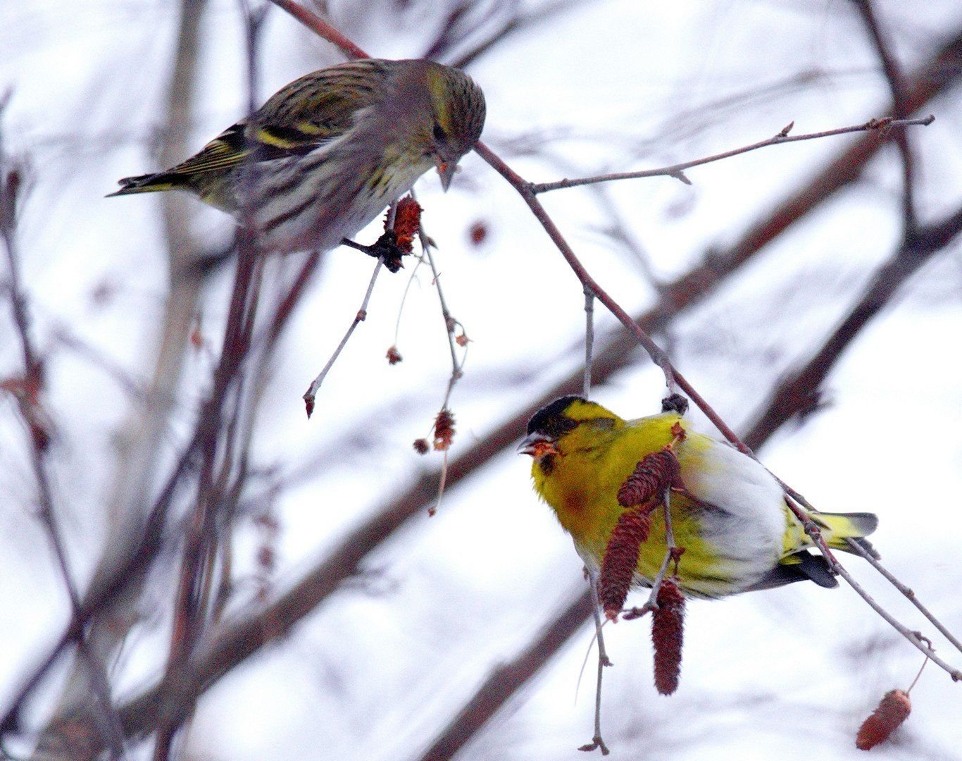 In autumn and winter its diet is based on the seeds of deciduous trees such as birch and above all alder. They also visit cultivated areas and pasture where they join with other finches in eating the seeds of various Compositae such as thistles, dandelions, Artemisia, knapweeds and other herbaceous plants such as St. John’s wort, meadowsweet and sorrel.
