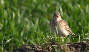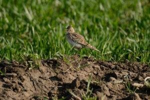English farmers are now encouraged and paid to maintain and create biodiversity for improving the habitat for Eurasian Skylarks. Natural England’s Environmental Stewardship Scheme offers 5 and 10-year grants for various beneficial options. For example there is an option where the farmer can opt to grow a spring cereal instead of a winter one, and leave the stubble untreated with pesticide over the winter. The British Trust for Ornithology likens the stubbles to ‘giant bird tables’ – providing spilt grain and weed seed to foraging birds.