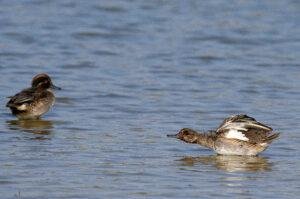 Whether the Eurasian and Green-winged teals are to be treated as one or two species is still being reviewed by the AOU, while the IUCN and BirdLife International separate them nowadays. Despite the almost identical and highly apomorphic nuptial plumage of their males, which continues to puzzle scientists (see the Green-winged Teal page for a discussion of the species’ phylogeny), they seem well distinct species, as indicated by a wealth of behavioural, morphological and molecular data.