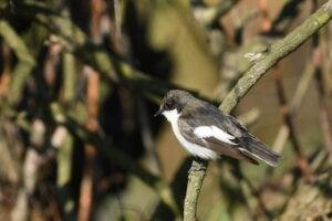 The European pied flycatcher (Ficedula hypoleuca) is a small passerine bird in the Old World flycatcher family. One of the four species of Western Palearctic black-and-white flycatchers, it hybridizes to a limited extent with the collared flycatcher. It breeds in most of Europe and western Asia. It is migratory, wintering mainly in western Africa. It usually builds its nests in holes on oak trees. This species practices polygyny, usually bigamy, with the male travelling large distances to acquire a second mate. The male will mate with the secondary female and then return to the primary female in order to help with aspects of child rearing, such as feeding.