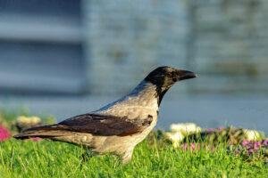 The Hooded Crow is omnivorous, with a diet similar to that of the Carrion Crow, and is a constant scavenger. It drops molluscs and crabs to break them after the manner of the Carrion Crow, and an old Scottish name for empty sea urchin shells was “crow’s cups”. On coastal cliffs the eggs of gulls, cormorants and other birds are stolen when their owners are absent, and it will enter the burrow of the Puffin to steal eggs. It will also feed on small mammals, scraps, smaller birds and carrion.