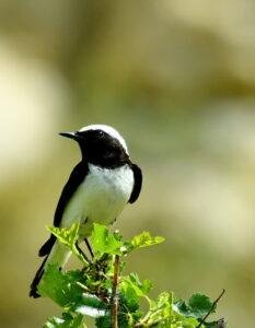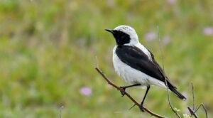 The pied wheatear has a wide range across Eastern Europe and Western Asia and is common across that range. There are estimated to be somewhere between 96,000 and 420,000 individuals in Europe. As Europe forms 5 to 24% of the global range, the total population may be in the region of 400,000-8,400,000 individuals. The population is believed to be stable with no particular threats so the bird is rated as being of “Least Concern” by Birdlife International