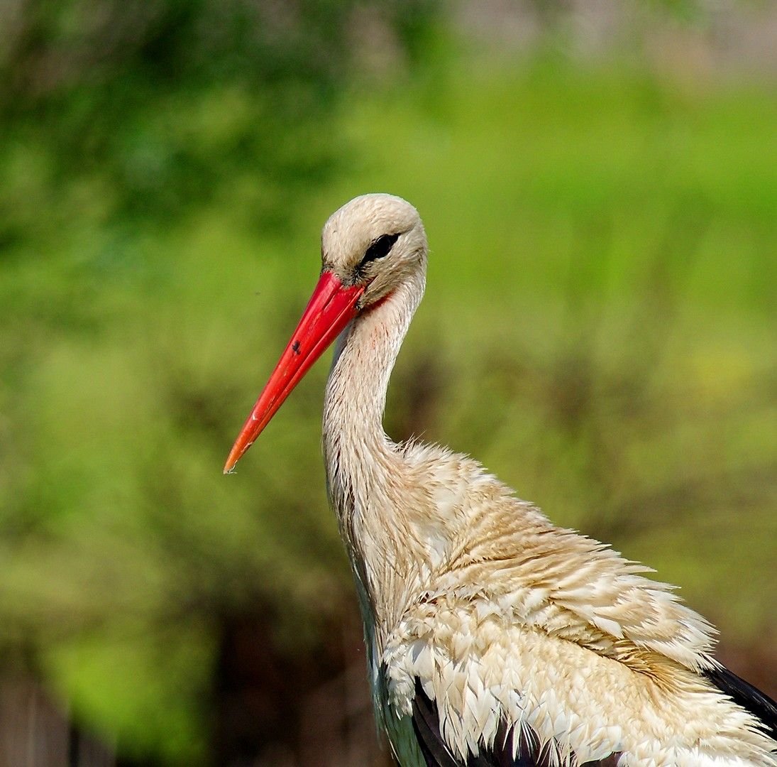 A White Stork’s droppings, containing faeces and urine, are sometimes directed onto its own legs, making them appear white. The resulting evaporation provides cooling and is termed urohidrosis. Birds that have been ringed can sometimes be affected by the accumulation of droppings around the ring leading to constriction and leg trauma. The White Stork has also been noted for tool use by squeezing moss in the beak to drip water into the mouths of its chicks.