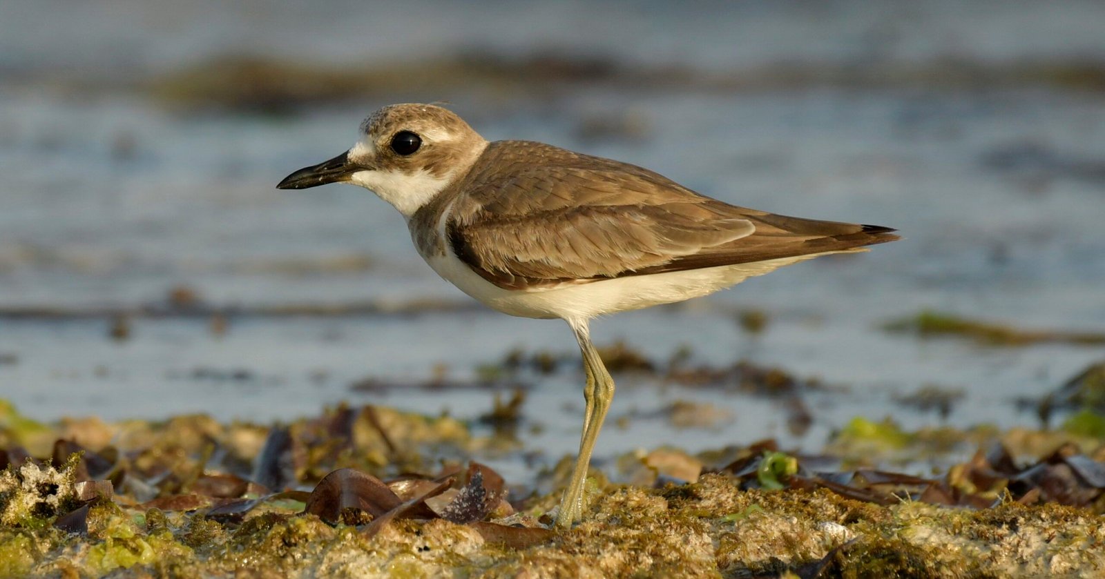 Cet oiseau mesure 22 à 25 cm. Il s’agit d’un limicole trapu aux pattes et au bec relativement longs pour un gravelot.