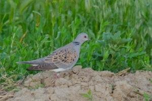 C’est le plus souvent par son chant que l’on repère la tourterelle des bois car elle reste volontiers confinée dans la végétation. Son roucoulement est doux comme étouffé.
